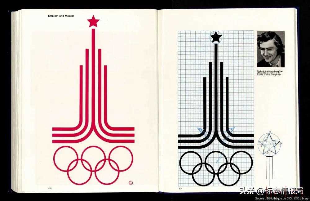 這是奧運(yùn)會(huì)視覺設(shè)計(jì)指南中的另一個(gè)經(jīng)典案例。1980年的奧運(yùn)會(huì)伴隨著政治性抵制事件的發(fā)生而展開,所以?shī)W運(yùn)五環(huán)的位置更突出,以此來(lái)表達(dá)奧林匹克運(yùn)動(dòng)對(duì)五大洲團(tuán)結(jié)的強(qiáng)烈呼喚。會(huì)徽在五環(huán)上面五條平行線呈金字塔型垂直排列,象征奧林匹克更快、更高、更強(qiáng)的精神,同時(shí)也體現(xiàn)了莫斯科的城市建筑風(fēng)格,頂部的五角星取材于前蘇聯(lián)的國(guó)旗。整個(gè)標(biāo)志以耀眼的紅色呈現(xiàn)出強(qiáng)烈的視覺沖擊力。