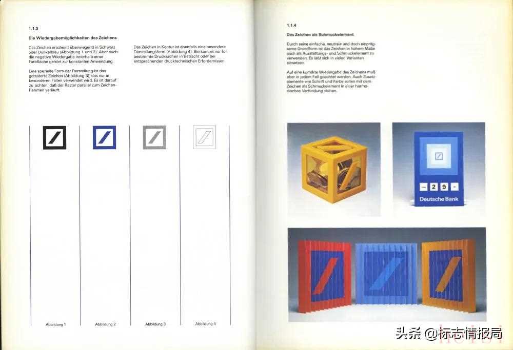 然而,與我們今天看到的深藍(lán)色德意志銀行相比,這份品牌手冊(cè)則具有更多不同選擇的調(diào)色板。