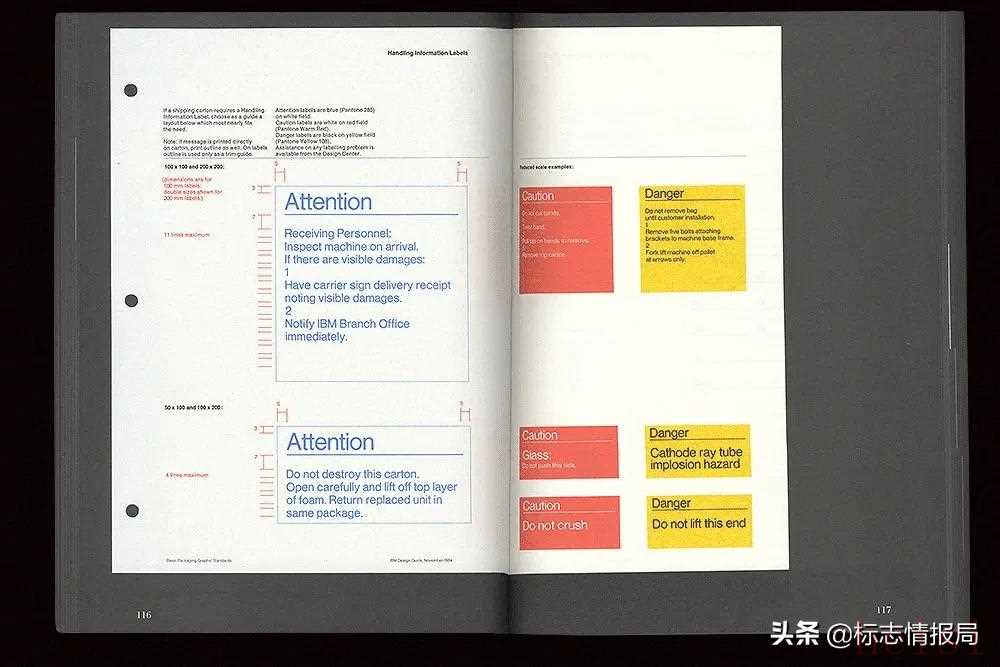 品牌形象識(shí)別指南(identity guidelines)和圖形標(biāo)準(zhǔn)指導(dǎo)手冊(cè) (graphics standards manuals) 就像一件產(chǎn)品的使用說(shuō)明書一樣,是用來(lái)定義品牌使用規(guī)范的一本文檔。它詳細(xì)描述了在標(biāo)牌上應(yīng)該使用哪些顏色和字體、以及頁(yè)面上元素間該如何留白等諸多細(xì)節(jié)。