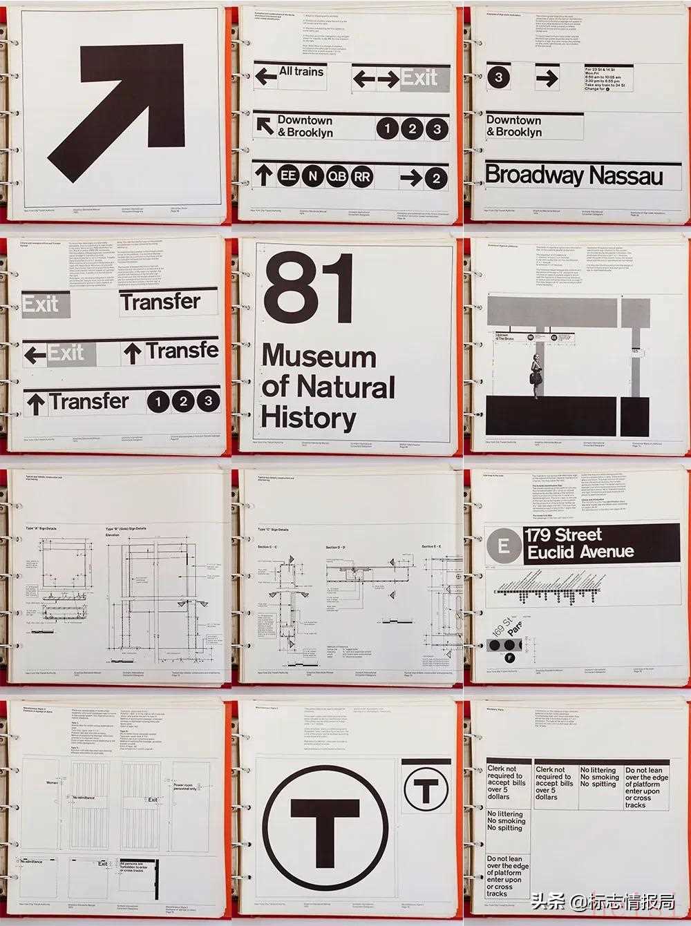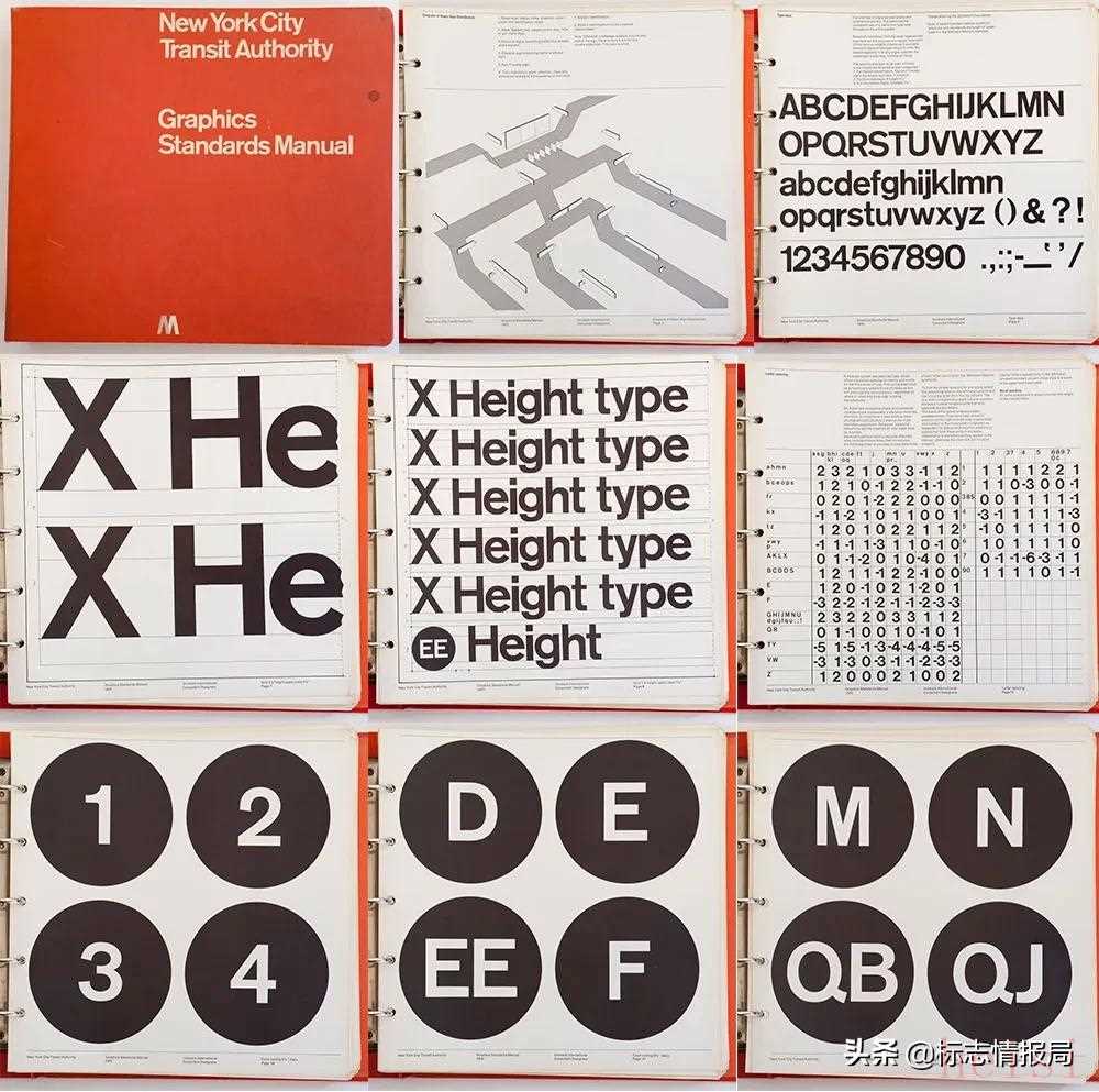 1967 年,紐約市運(yùn)輸局聘請(qǐng) Unimark 設(shè)計(jì)公司的 Massimo Vignelli 和 Bob Noorda 為紐約地鐵設(shè)計(jì)一套標(biāo)牌系統(tǒng)。作為項(xiàng)目的一部分,他們提供了一份圖形標(biāo)準(zhǔn)手冊(cè),來(lái)描述該系統(tǒng)實(shí)施時(shí)所涉及到的精密細(xì)節(jié)。