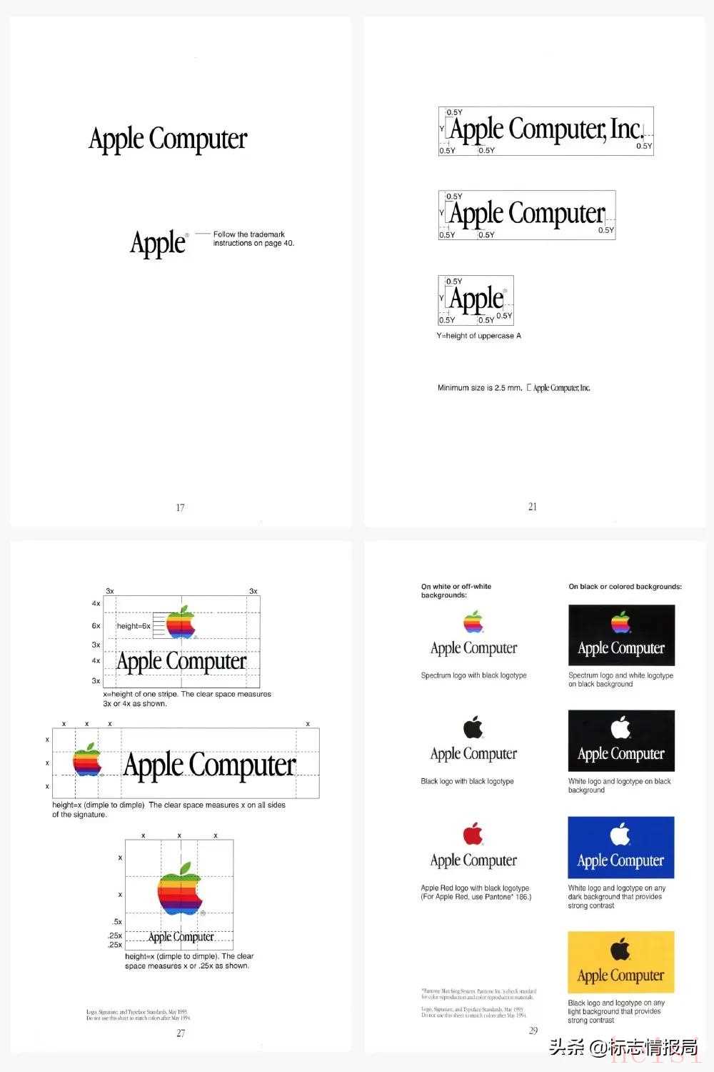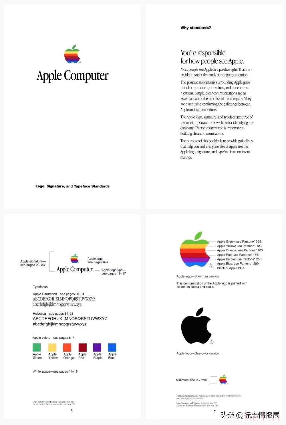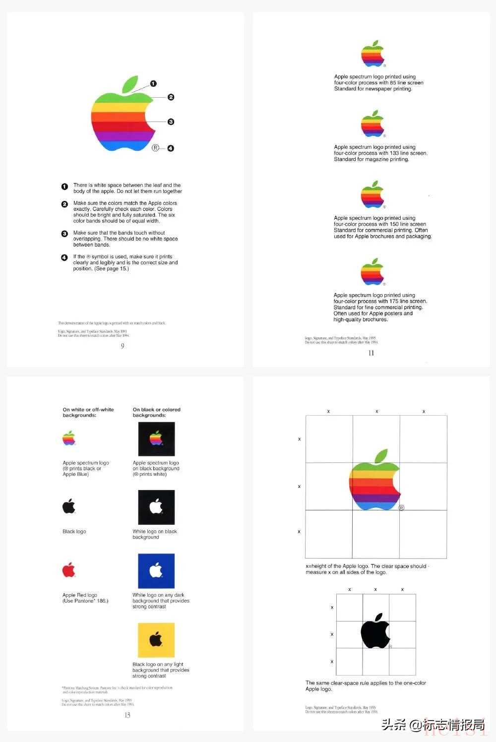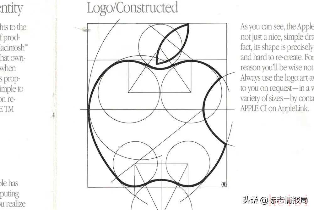 Apple 當(dāng)時(shí)的圖形標(biāo)準(zhǔn)指導(dǎo)手冊(cè)其實(shí)很簡(jiǎn)單,它只包含了如間距,顏色和板式的一些定義,僅此而已。