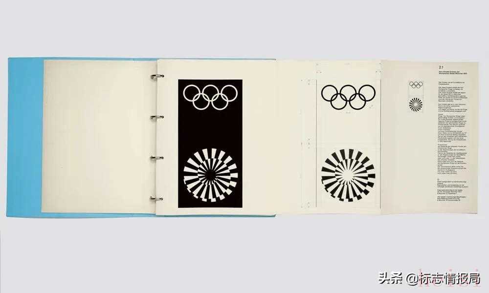 慕尼黑會(huì)徽設(shè)計(jì)只有黑白兩種色彩,是一個(gè)被稱做「宇宙」的螺旋體,這個(gè)運(yùn)動(dòng)感十足的符號(hào)營(yíng)造出一種接近無(wú)限的視覺幻想,表達(dá)出本屆奧運(yùn)會(huì)「光明、清新、崇高」的主題。著名設(shè)計(jì)師 Otto Aicher 用這種符號(hào)化的語(yǔ)言營(yíng)造出一種運(yùn)動(dòng)的氛圍,而并不著重于刻畫競(jìng)賽的痕跡。