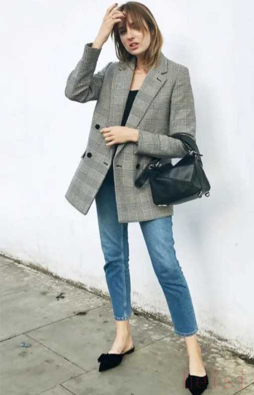 春日通勤最愛之一的大皮鞋+格紋西裝▼
