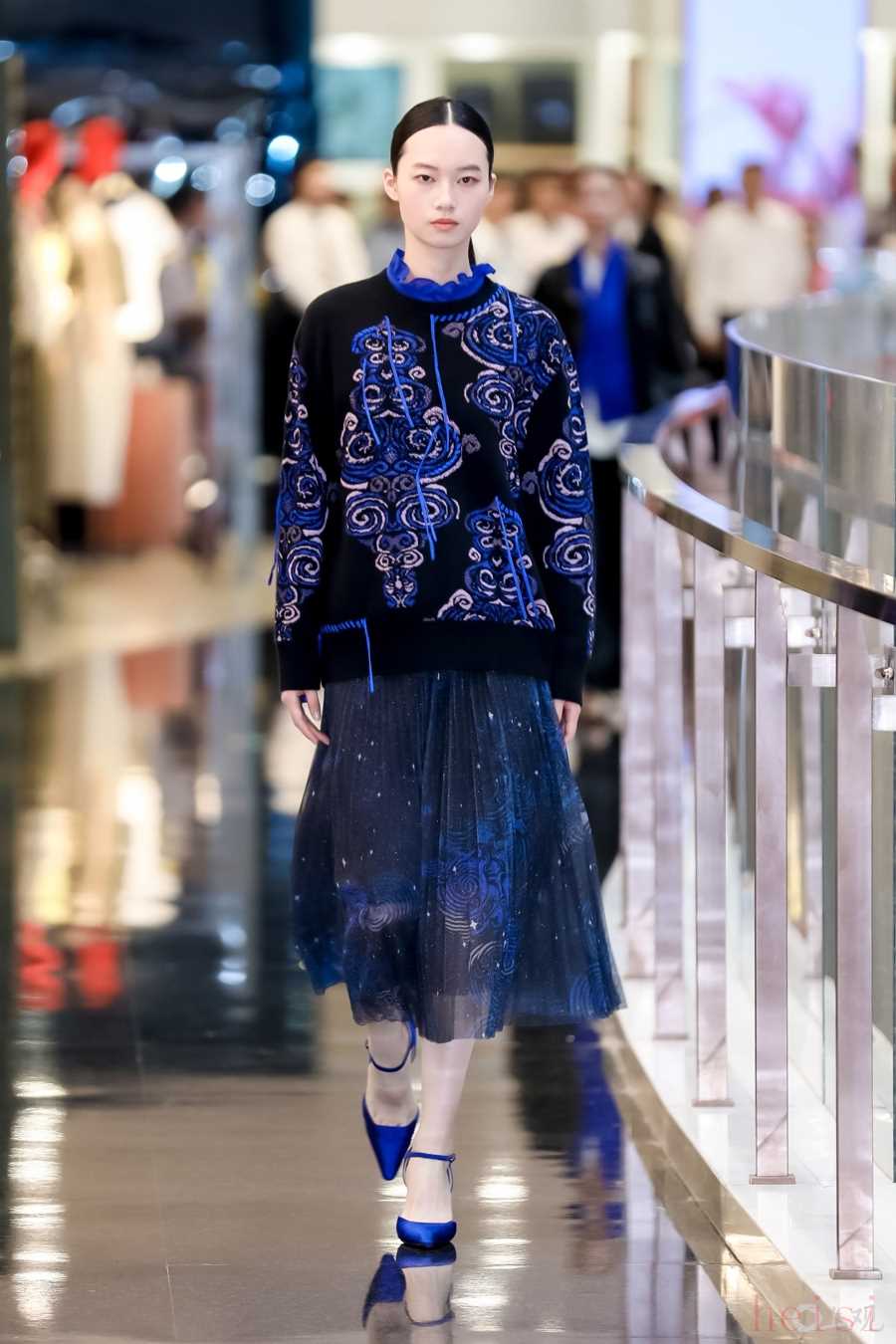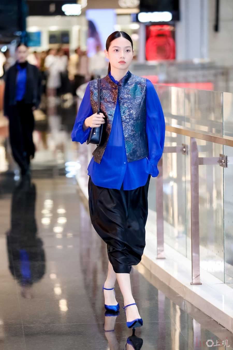 活動期間,一場以 “千年藍(lán)白,今世風(fēng)華” 為主題的藥斑布海派旗袍時(shí)尚秀精彩上演,其聚焦于藥斑布與海派旗袍的創(chuàng)新設(shè)計(jì),系列作品在復(fù)刻明清經(jīng)典紋樣的基礎(chǔ)上,大膽融入江南水鄉(xiāng)符號等現(xiàn)代元素,營造出 “一布藏古今” 的強(qiáng)烈文化張力。同時(shí),商場還攜手入駐商戶EP雅瑩,共同打造新中式服飾秀。這兩場精彩演出,讓觀眾在欣賞時(shí)尚秀的過程中,深刻體會到傳統(tǒng)文化與現(xiàn)代時(shí)尚的碰撞與交融。