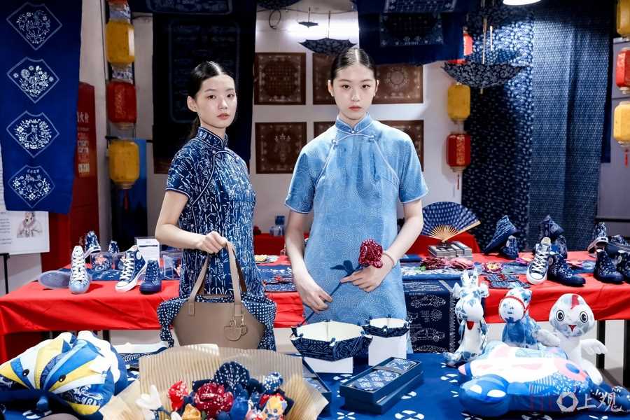 藥斑布,這一源自上海嘉定安亭的傳統(tǒng)印染技藝,至今已擁有八百余年的悠久歷史。其憑借藍(lán)白相間的獨(dú)特紋理以及天然防蛀防霉的優(yōu)良特性,被譽(yù)為 “布上青花”,是上海地區(qū)極具代表性的非遺文化瑰寶。本次創(chuàng)新展集中展現(xiàn)了藥斑布在當(dāng)代設(shè)計(jì)領(lǐng)域的多元創(chuàng)新應(yīng)用,打破了傳統(tǒng)非遺技藝的應(yīng)用邊界,實(shí)現(xiàn)了與海派旗袍、皮具、家居用品及文創(chuàng)產(chǎn)品的深度跨界融合,讓古老的藥斑布技藝在現(xiàn)代生活場景中煥發(fā)出新的生機(jī)。