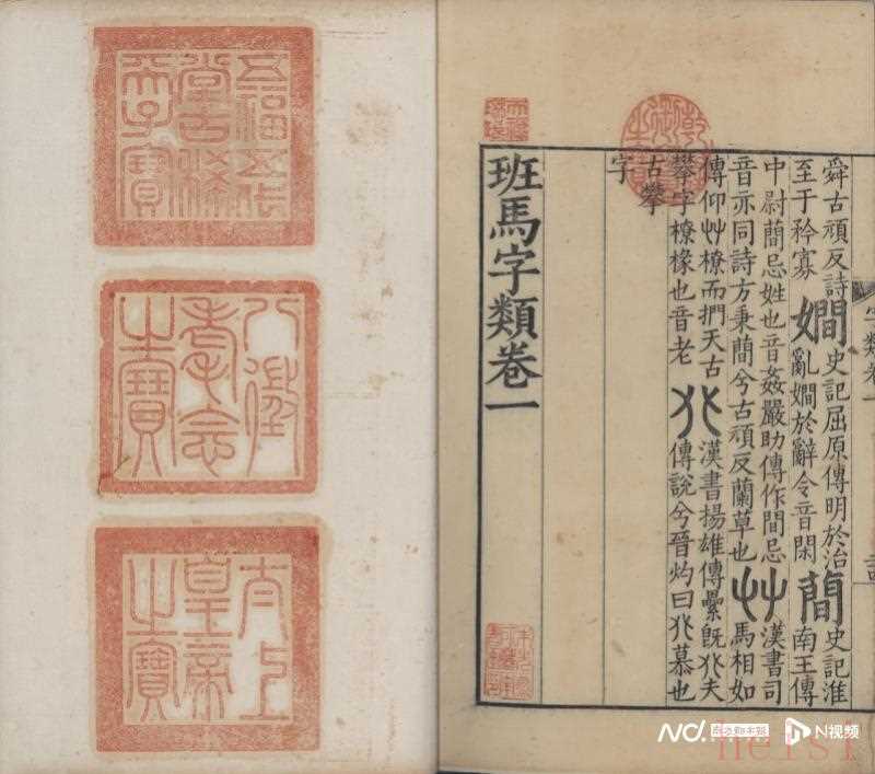 清乾隆為彰顯國之正統(tǒng),打造皇家?化?業(yè),不惜舉?國之?,收盡天下珍稀典籍營造「天祿琳瑯」?!柑斓摿宅槨乖?29部,毀于嘉慶初年乾清宮大火,嘉慶帝下旨命大學(xué)士彭元瑞再征古籍重建「天祿琳瑯」?!短斓摿宅槙坷m(xù)編》著錄有五部宋版《班馬字類》,三部現(xiàn)藏于中國國家圖書館,一部藏于北京西城區(qū)圖書館,一部即這套百年后重現(xiàn)人間的——清宮天祿琳瑯 題《宋板班馬字類》葉盛本,其為五部之首,也是唯一一套歷代傳承有序之珍本。南宋大文學(xué)家洪邁為《班馬字類》寫序贊,今之為文者,必祖班馬,?天下班?,又以此部《班?字類》為尊。