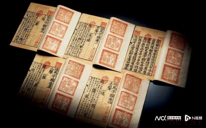 是書流傳有緒,經(jīng)明早期江南藏書家之首、吏部左侍郎葉盛,明末清初藏書家季振宜、清康熙禮部尚書兼武英殿大學(xué)士、文壇領(lǐng)袖朱彝尊遞藏,乾隆年間,季氏藏書大部分由昆山徐乾學(xué)傳是樓轉(zhuǎn)入清宮內(nèi)府。書上鈐有“菉竹堂藏書”、“季振宜藏書”、“季振宜印”、“滄葦”、“曝書亭珍藏”、“朱彝尊印”等藏印。入清宮后,每?jī)?cè)俱鈐天祿琳瑯諸璽,前后副葉鈐“五福五代堂古稀天子寶”“八徵耄念之寶”“太上皇帝之寶”三枚“大三璽”,首末葉鈐“乾隆御覽之寶”“天祿繼鑒”“天祿琳瑯”三璽。