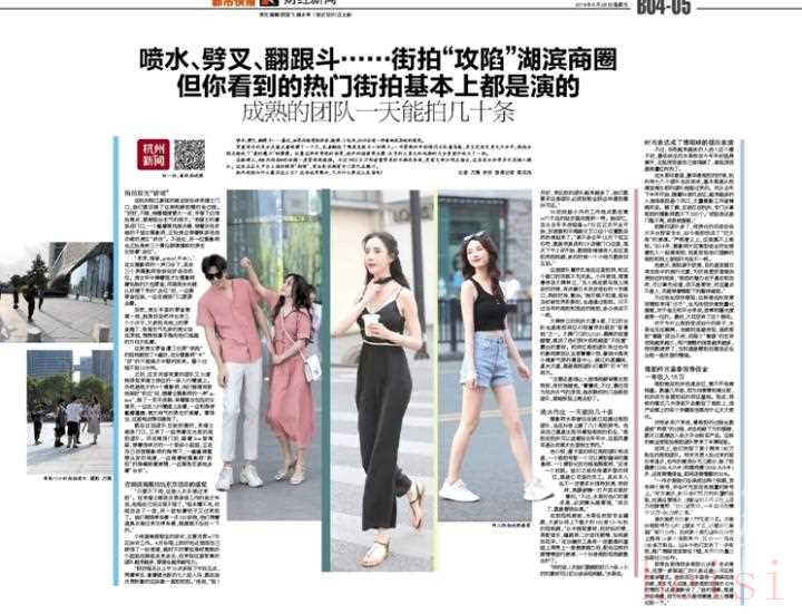 2019年,都市快報(bào)專門做過(guò)一篇關(guān)于街拍的深度報(bào)道。(2019年6月28日財(cái)經(jīng)新聞《噴水、劈叉、翻跟斗……街拍“攻陷”湖濱商圈 但你看到的熱門街拍基本上都是演的》)