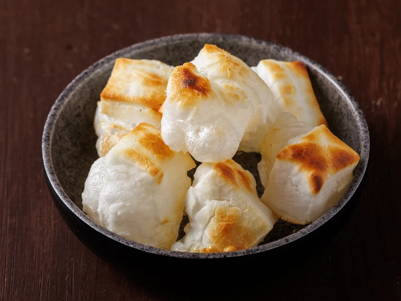 餐廳還特別選用花東產(chǎn)生米與雞骨一同熬煮,讓湯頭自然帶有米香與稠度。單點(diǎn)的熱門品項(xiàng),以雞胸與雞絞肉揉製,加入紫蘇葉增添清香,而且入口彈牙、味道清爽,深受女性客人的喜愛。兩種鍋還有隨菜盤附贈(zèng)的也相當(dāng)美味,久煮后年糕吸附鍋底精華,外層柔軟、中心帶點(diǎn)黏彈口感,咬下去還能感受到湯汁滲出的鹹香。
