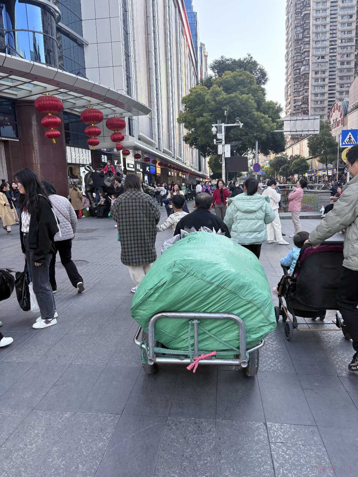 盡管天氣寒冷,但人們的購物熱情難以冷卻。在漢正街,小情侶手挽著手左右打量,商戶用推車推著大包蛇皮袋行進(jìn),商家叫賣聲絡(luò)繹不絕。