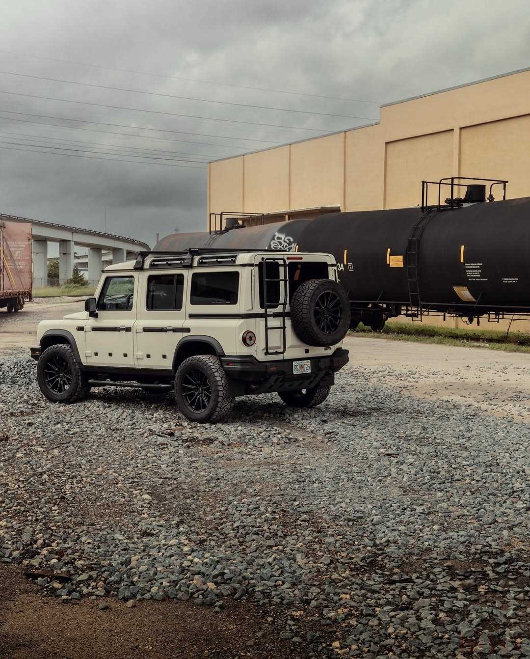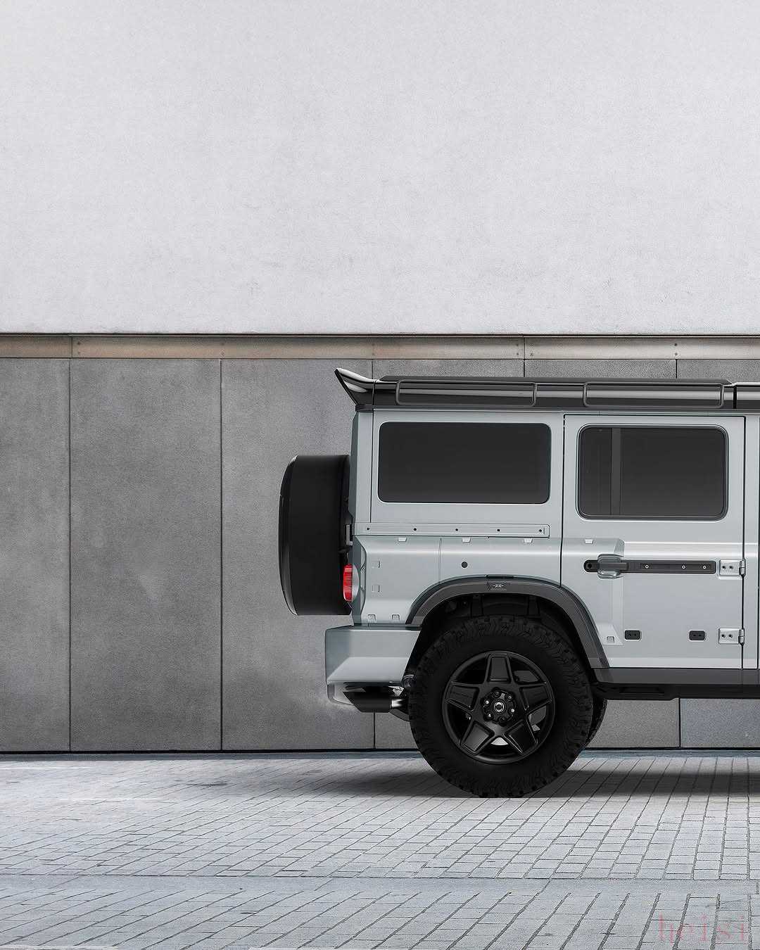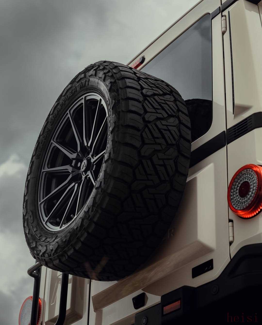 限量版采用“神奇蘑菇白”(MagicMushroom)車漆,啞光質(zhì)感搭配零鍍鉻設(shè)計(jì),致敬Belstaff經(jīng)典戶外夾克的復(fù)古風(fēng)格。車尾配備不對稱雙開式尾門,可外掛全尺寸備胎與爬梯,預(yù)留車頂帳篷擴(kuò)展接口,兼顧實(shí)用性與視覺沖擊力。