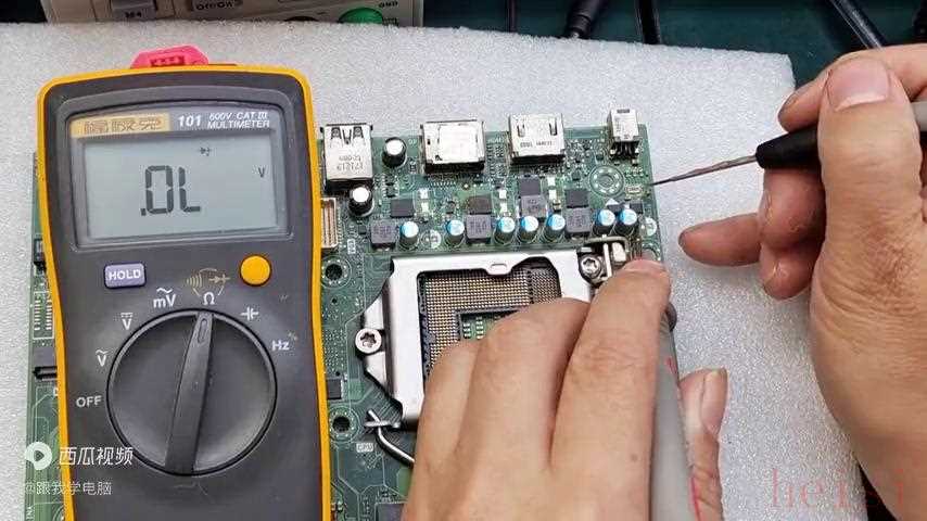 7. 接下來看一下,通過外表來看,沒有發(fā)現(xiàn)有燒毀的痕跡。像這種主板怎么維修?接下來同樣也需要按照筆記本的一些方式,針對這些電感全部測量一次。