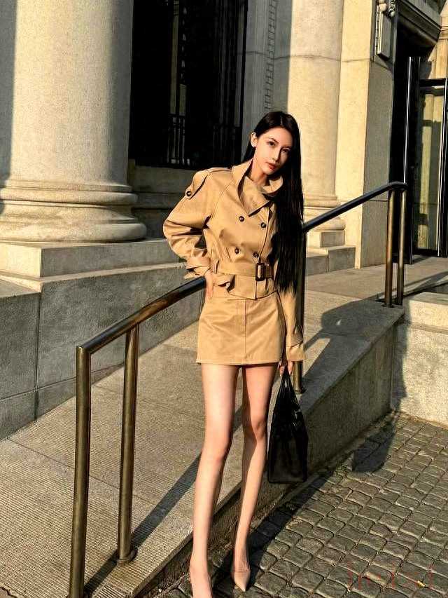 想象一下,穿著卡!其風(fēng)衣套裝的她在都市的晨曦或黃昏中行走,風(fēng)衣的輪廓勾勒出利落的身形,內(nèi)搭的襯衫或西裝恰到好處地展現(xiàn)線條,帽檐下的眼神自信而迷人。裙子的擺動(dòng)或褲子的垂墜感,在光影下流動(dòng)