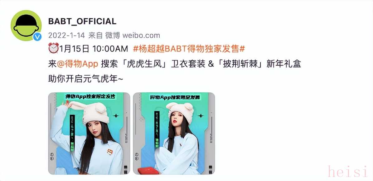 去年,王鶴棣在其生日當(dāng)天推出D_DESIRABLE,也是在因《蒼蘭訣》大火之后。楊超越主理潮牌BABT是在2020年10月面世,同年6月,她所在的火箭少女101限定團正式解散,并開始成立個人工作室發(fā)展個人業(yè)務(wù)。