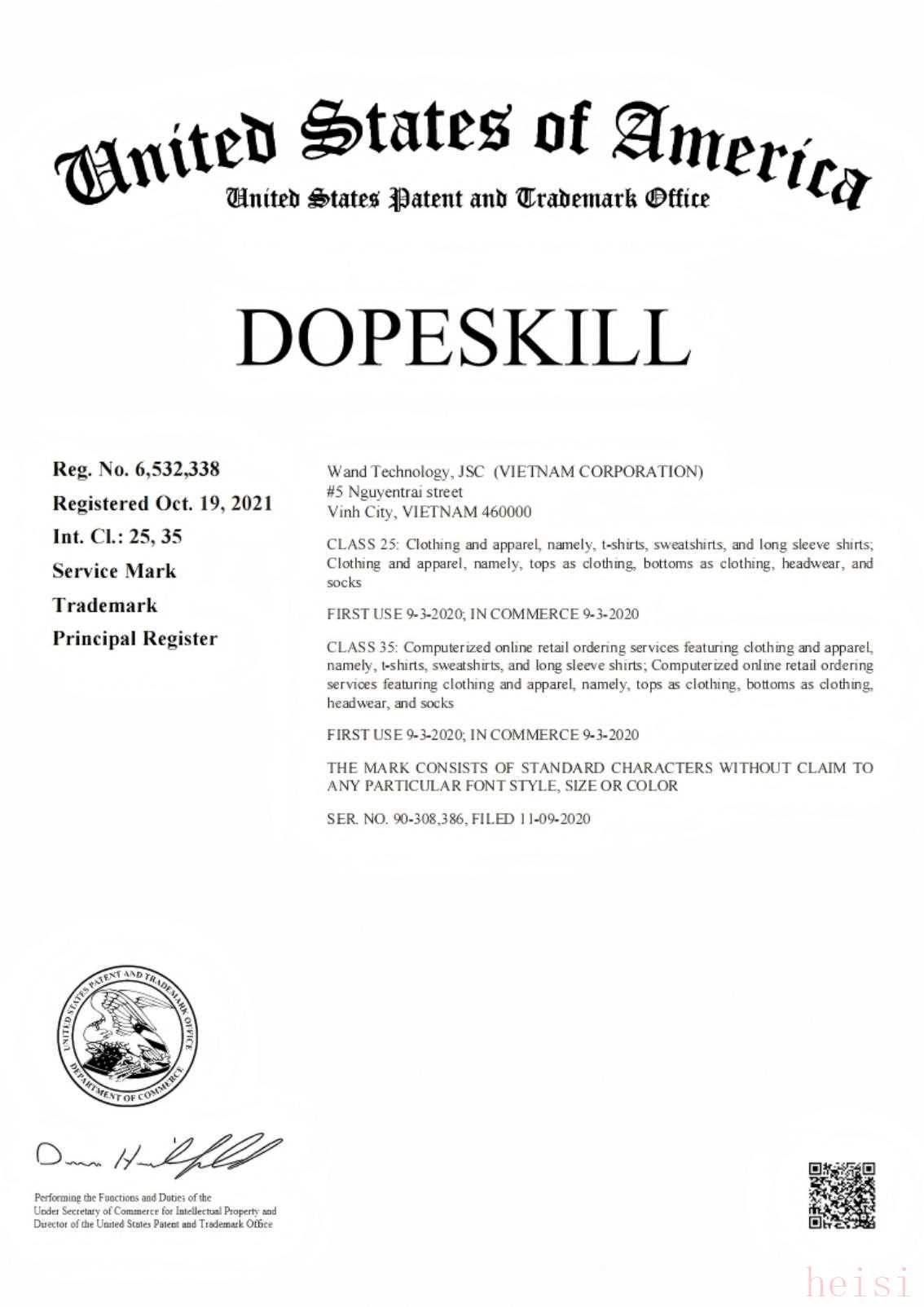 2. 申請專利:如果Dopeskill的產(chǎn)品設(shè)計具有創(chuàng)新性和獨特性,它可能會申請設(shè)計專利或?qū)嵱眯滦蛯@?,以保護(hù)其產(chǎn)品的外觀設(shè)計或技術(shù)特征。