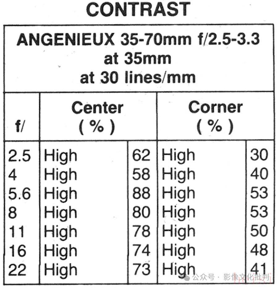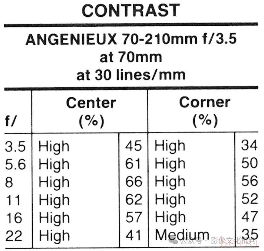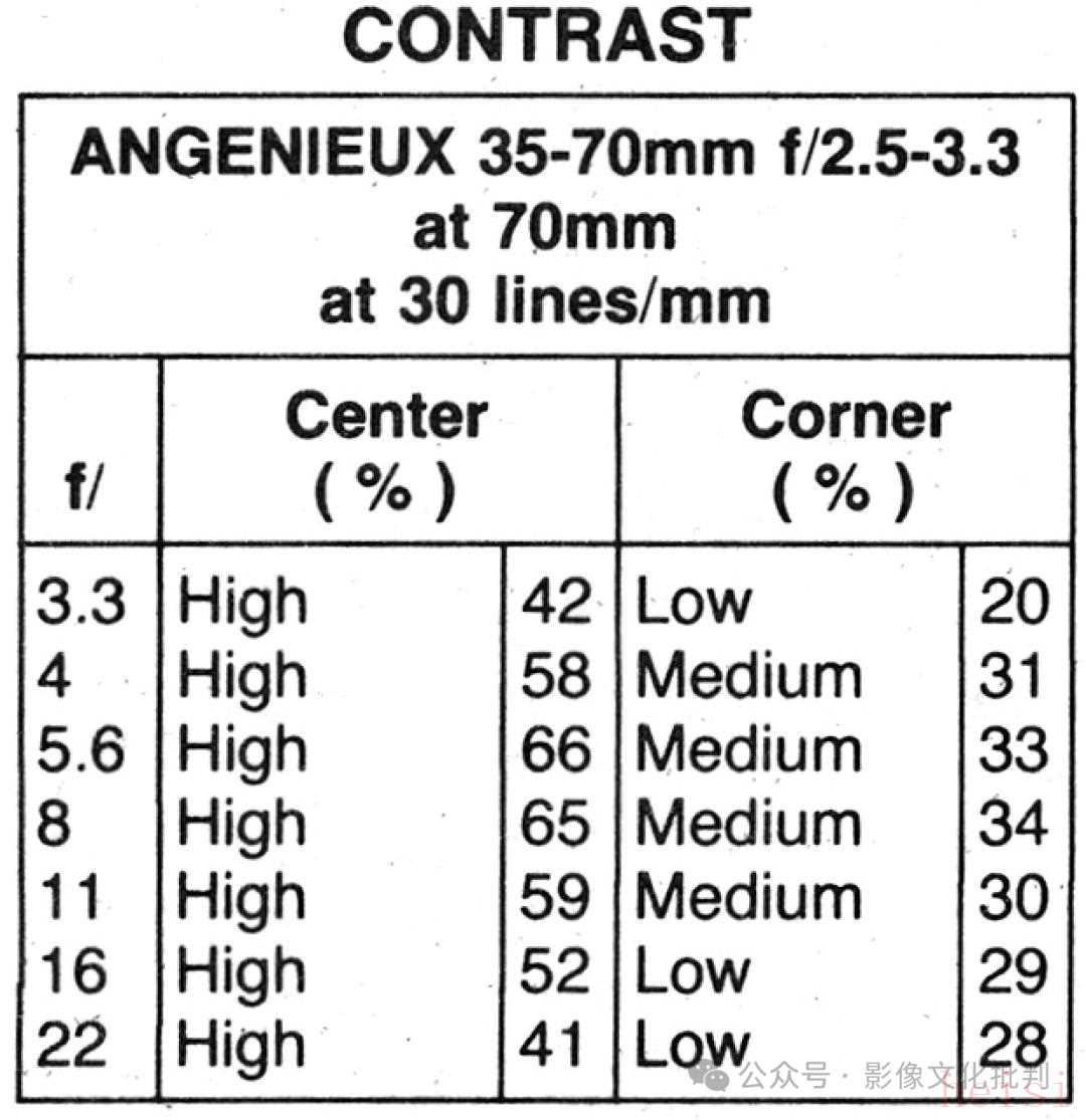 另外《Popular Photography》雜志通常都是測(cè)量標(biāo)靶0.01mm細(xì)線反差,最終結(jié)果不太適合橫向?qū)Ρ取?/span>