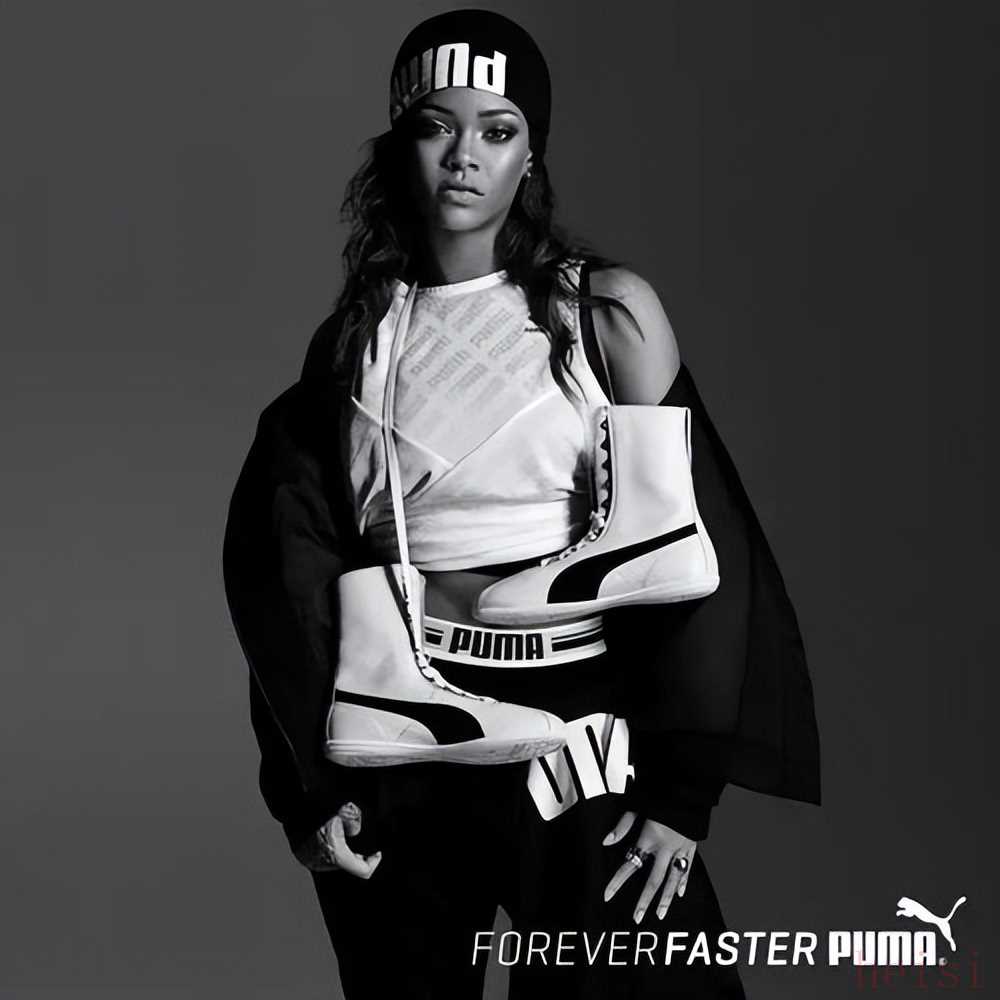 上個世紀阿迪達斯的創(chuàng)始人阿道夫_達斯勒曾表示自己的鞋子是世界第一,對此言論,魯?shù)婪蚺扇思娜チ丝謬樞?,警示弟弟話不要說的太滿。可如今時過境遷,耐克阿迪獨領(lǐng)風騷,彪馬因為在休閑領(lǐng)域過于遲緩的市場嗅覺和專業(yè)領(lǐng)域的慢動作,已經(jīng)與第一梯隊拉開了難以逾越的身位。2013年,彪馬凈利潤暴跌33.7%,一度要被云開集團賣掉。為了拯救岌岌可危的品牌,彪馬聘請了蕾哈娜擔任品牌全球大使,希望借助明星效應(yīng),能吸引更多的消費者。