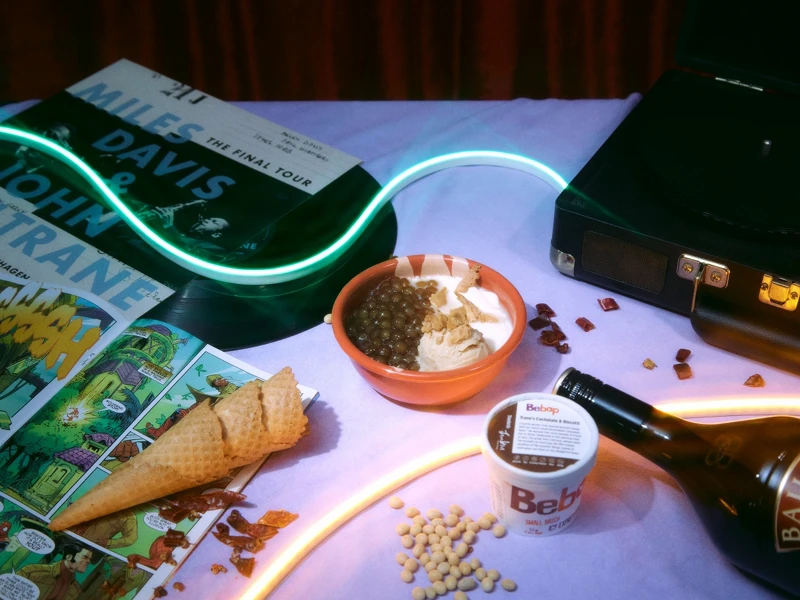 以臺北東區(qū)的夜生活文化為發(fā)想,巧妙地將貝禮詩奶酒、焙火烏龍茶結(jié)合豆花,搭配上焦化杏仁冰淇淋與甜筒脆片,帶來淺嚐奶酒的香醇,以及品嚐焦糖脆餅和豆花的豐富口感,具有十足的趣味性與微醺療癒的大人系浪漫。(東區(qū)微醺豆花店限定)