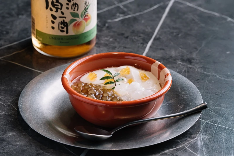 以居酒屋受歡迎的梅酒調(diào)飲為靈感,在豆花湯底加入梅酒創(chuàng)造出酸甜的梅果香氣,并大膽地加入增添風(fēng)味厚實度與樂趣。點綴入饌的糖漬柳橙丁、檸檬馬鞭草,也賦予味蕾豐富的層次變化。(東區(qū)微醺豆花店限定)