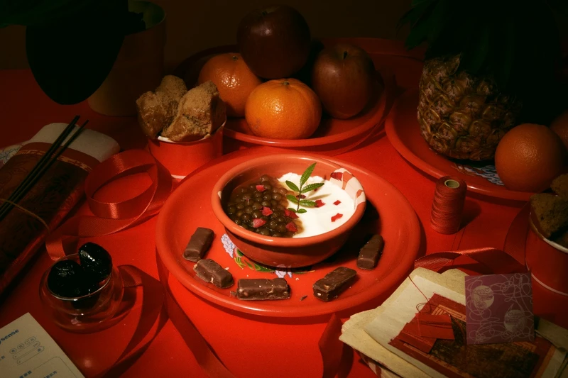 進入走出東區(qū),進駐大稻埕開設(shè)。這間分店以霞海城隍廟為靈感,把月老文化轉(zhuǎn)化為味覺故事。最具代表性的,以紅棗、甘蔗、荔枝與蘋果入味,并以金萱茶為湯底。清香爽口的風(fēng)味背后,藏著祈愿與祝福。這其實要說到在成立過程中一段可愛的小故事,創(chuàng)辦人實際到廟里擲筊,向月老確認這碗豆花是否合宜。結(jié)果月老連給六個圣筊,彷彿親自認可這場甜蜜的創(chuàng)意,也讓許多情侶與游客專程來嘗一口,這可能是全臺最帶的豆花,一口里藏著好緣分也說不定?