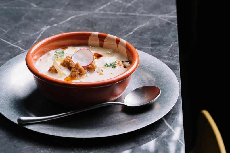 由王昱仁(Ricky)與康清智(Peter)共同創(chuàng)立,兩人早先在2024年以在臺北東區(qū)的開設(shè)豆花專賣店,近日則再度攜手推出全新品牌,把豆花的想像徹底推向另一個層次,除了延續(xù)手工豆花的傳統(tǒng),也融入兩人多年累積的餐飲經(jīng)驗。Peter 過去任職于星級飯店與中餐名館,擅長將食材重新排列組合;Ricky 則有甜點與日式食堂的背景,對風(fēng)味的精準(zhǔn)與比例有近乎執(zhí)著的要求。兩人共同發(fā)現(xiàn)豆花的可能性遠比想像中更多,除了可以是飯后的甜品,也能成為一道料理。