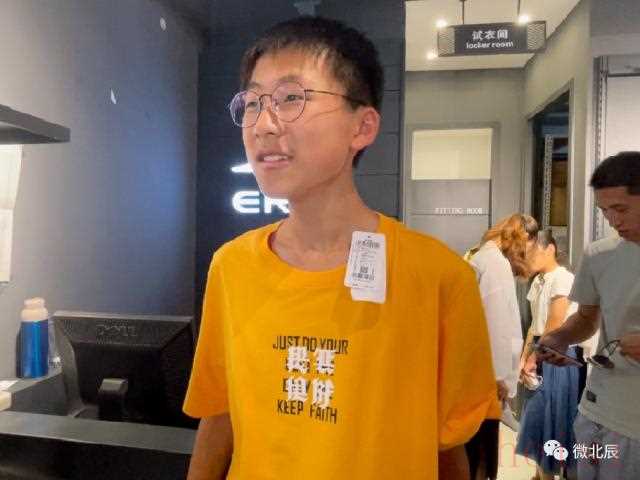 北辰區(qū)實(shí)驗中學(xué)學(xué)生段樹航在家長的陪伴下采購了一件T恤和一件褲子,吊牌都沒摘,直接就掃碼結(jié)賬,穿著出了店鋪。他說:“鴻星爾克支持河南,讓我覺得這個品牌特別有愛心。新衣服沒摘吊牌直接穿著出門,迫不及待是一方面,更多的是穿在身上有一種自豪感?!?/p>