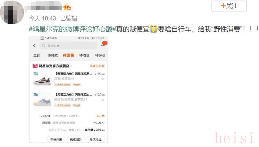 話題“鴻星爾克的微博評(píng)論好心酸”