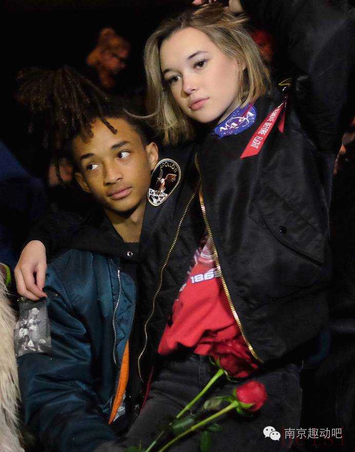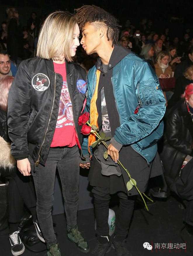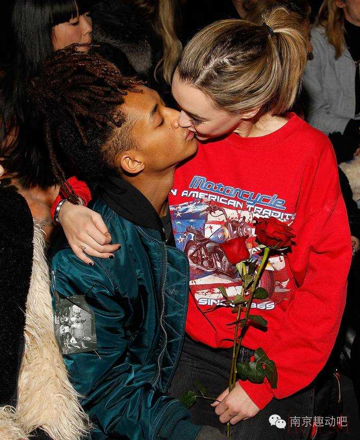 2月14日,2016秋冬紐約時(shí)裝周,Hood By Air品牌秀場。史密斯兒子賈登·史密斯讓女友坐在他的大腿上看秀,激吻秀恩愛。