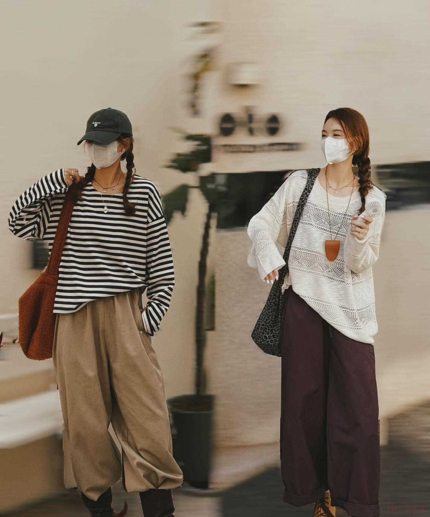 "核心搭配思路:" 通過黑白條紋的活力與卡其色的沉穩(wěn)、闊腿褲的寬松舒適感相結(jié)合,營造出輕松自在、帶點(diǎn)文藝氣息的日系風(fēng)格。