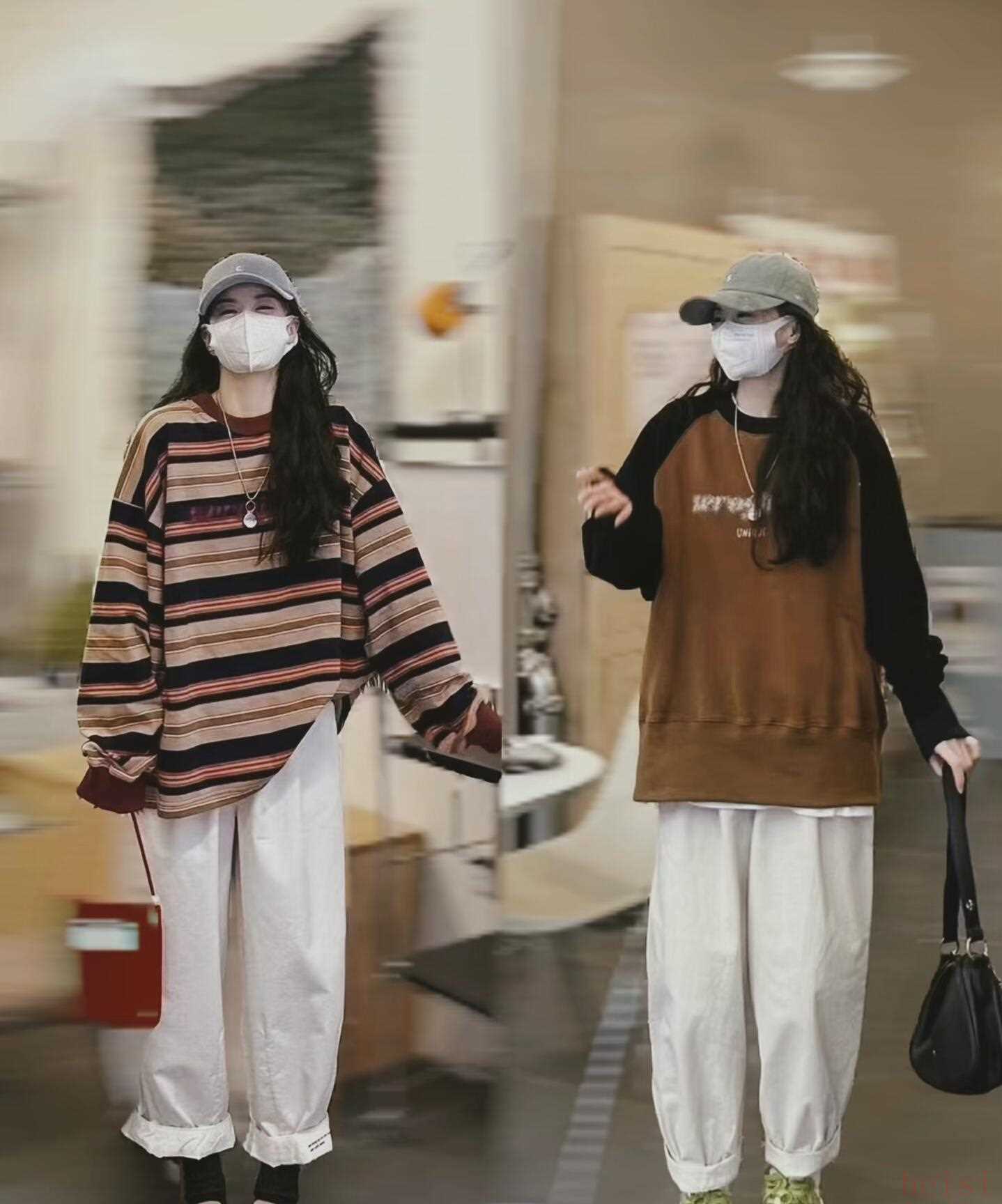 3. "寬松衛(wèi)衣 + 卡其闊腿褲:" 黑白條紋的寬松衛(wèi)衣或帽衫,搭配卡其色闊腿褲,打造出“裹尸袋”般的舒適感,是極致的懶人時(shí)尚。