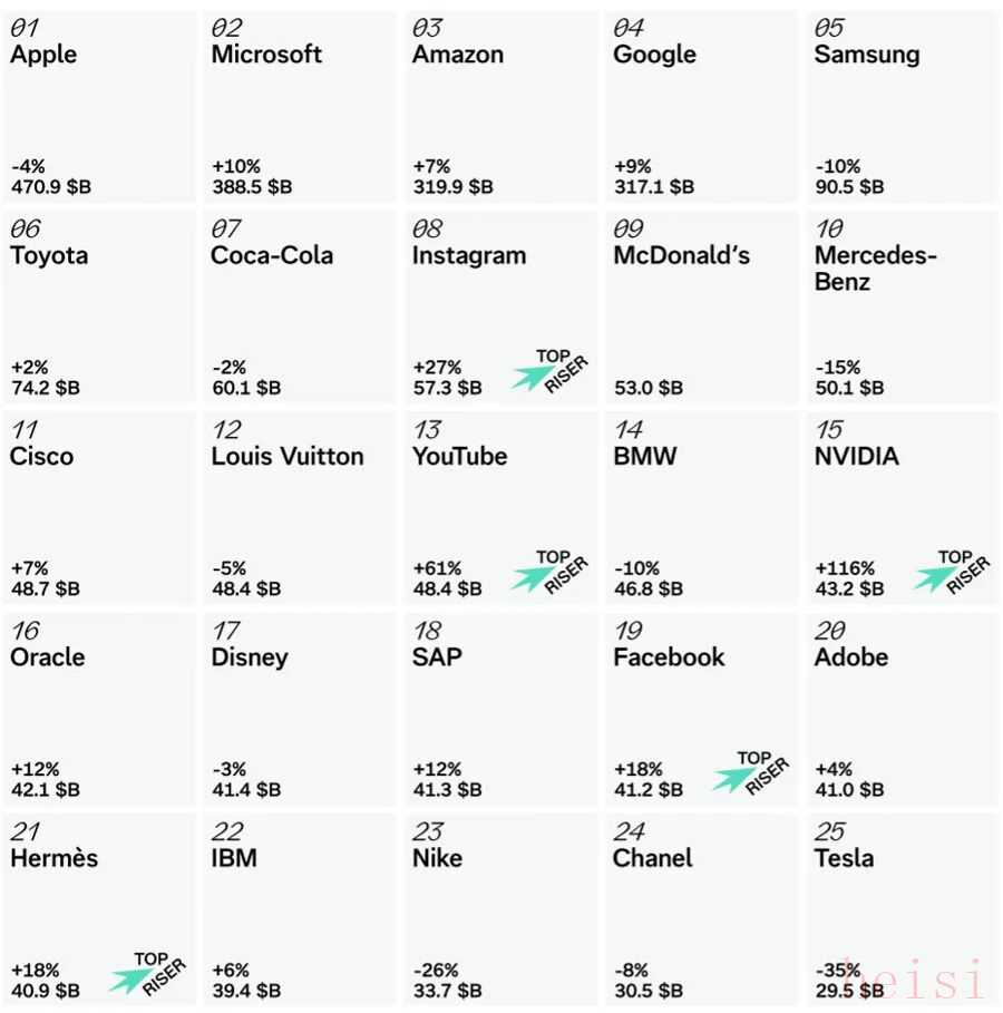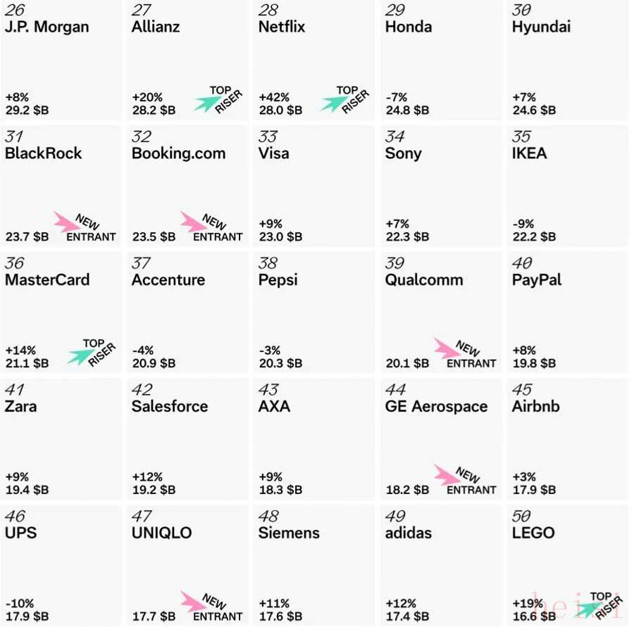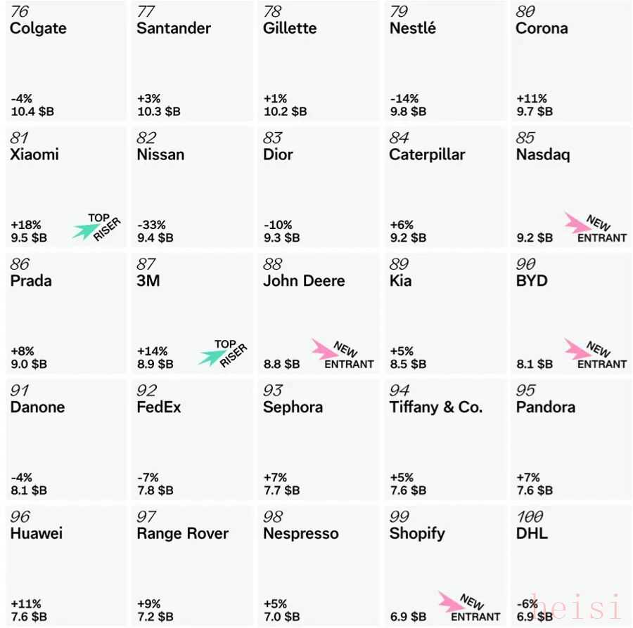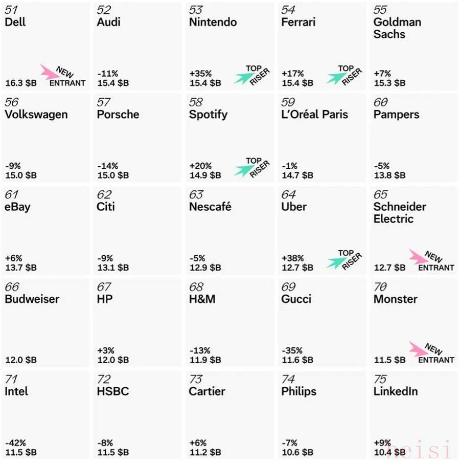 請(qǐng)注意,以上信息是基于您提供的內(nèi)容進(jìn)行的總結(jié)。如需更詳細(xì)的信息或榜單的具體內(nèi)容,建議直接查閱Interbrand發(fā)布的完整榜單或相關(guān)報(bào)道。