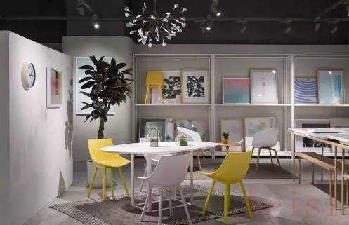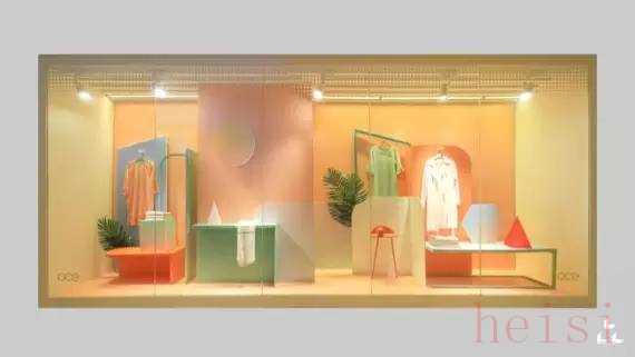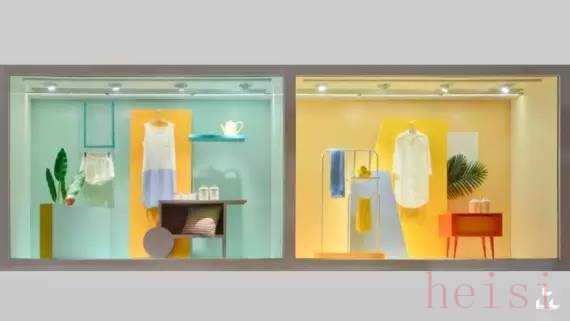 因為廣州店的外立面特別細長,不太好做通透的處理,所以每一個櫥窗我們都以北歐陽光生活的方式做了櫥窗的設計,用最簡單的色塊的方式來強調(diào)簡單明快的生活質(zhì)感。