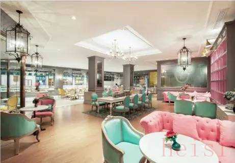 在室內(nèi)空間家具顏色選擇上,我們當時特別做了消費者體驗調(diào)研,找到不同的潛在的女性消費者,給他們看一些圖片,她們更喜歡什么樣的空間和家具,最終促使我們用法式甜品馬卡龍色來做整個家具的設計。