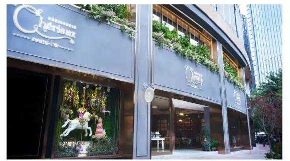 我們希望每一種產(chǎn)品的陳列方式和組合方式都形成有意思的情景概念,真的讓人感受到它的產(chǎn)品,愿意去體驗消費它。以及,公共空間和產(chǎn)品空間用灰調(diào)來處理,到了咖啡區(qū)地面是用粉色瓷磚,背景板是用鋁板做了特殊的柔和色彩的處理,讓整個色調(diào)形成非常溫和北歐自然的環(huán)境。案例分享第二個案例,廣州一個甜品品牌CHERI。