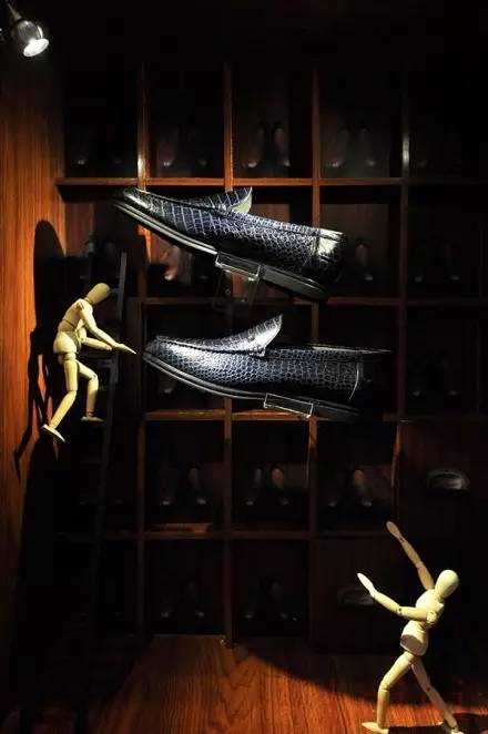 進到大鞋里,我們做了一些小裝置,這些小裝置讓人可以去了解到一雙優(yōu)質(zhì)質(zhì)量的皮鞋是這樣來的。而且我們在這里用了擬人的手法,我們把克雷斯丹尼這個品牌做成了一個小人,這些小人代表了品牌對于鞋的質(zhì)量和設計的關注,全心全意地去維護鞋。
