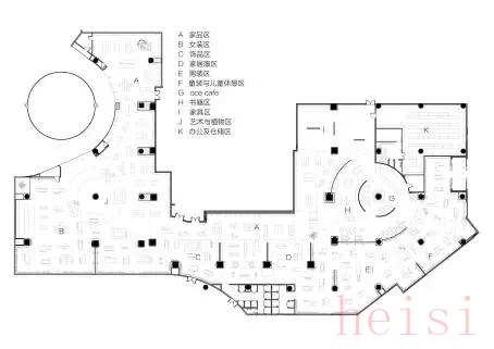該實體店占地面積2700㎡,其難點在于面積很大,且只有單一層,很難保證大家走到店里的時候不會感覺到悶且辛苦。所以我們在平面布局的時候動用了很多想法,怎么樣讓它的動線和消費體驗有非常豐富和遞進的感覺?