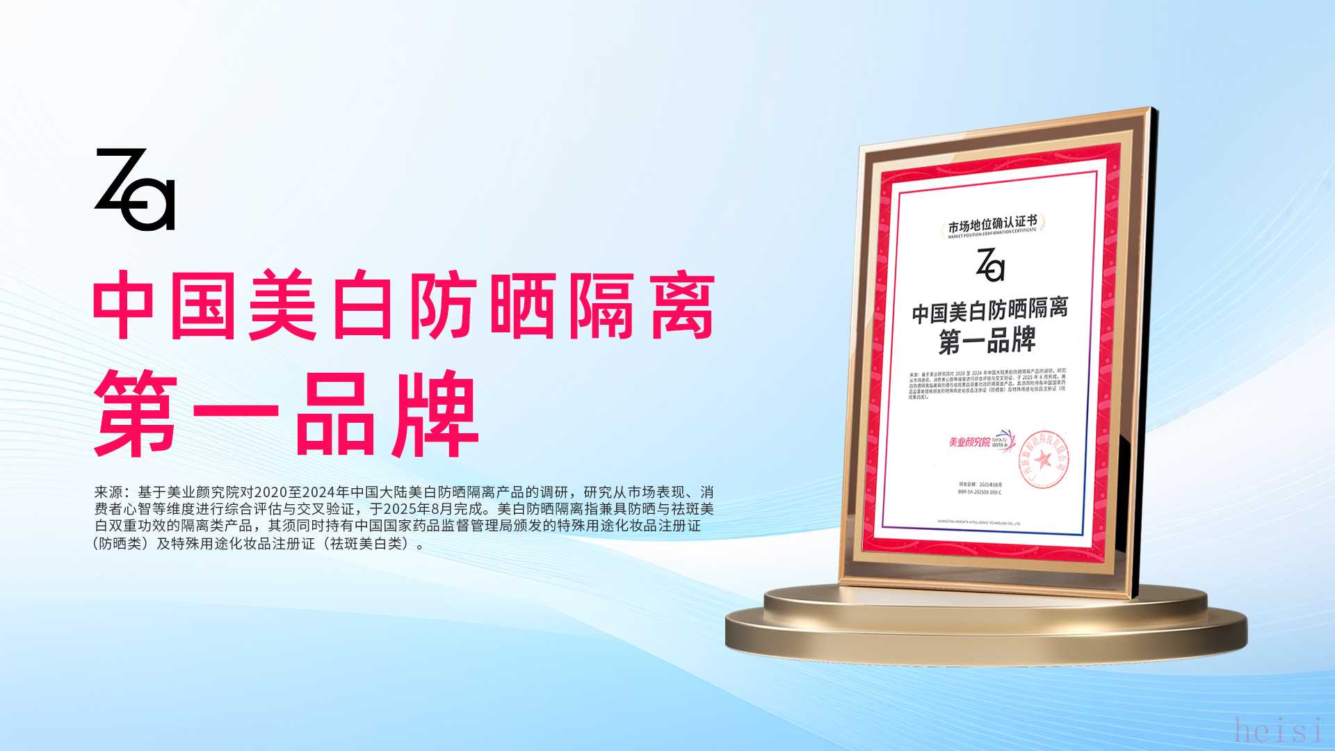 我們來分析一下這個說法:“中國美白防曬隔離第一品牌——Za姬芮 | 市場地位確認”。