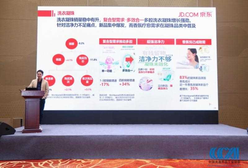 10月13日至16日,第45屆(2025)中國洗滌用品行業(yè)年會在重慶舉行。京東超市受邀出席并承辦專題論壇,深度解讀衣物清潔行業(yè)趨勢,發(fā)布品類發(fā)展策略。京東超市在會上指出,當前衣物清潔行業(yè)正處于需求升級與結(jié)構優(yōu)化的關鍵階段,輕奢高效、專洗專護、感官體驗、孩寵無憂四大消費趨勢凸顯。為此,京東超市構建了覆蓋產(chǎn)品打造、用戶滲透、營銷透傳、渠道共建的全鏈路品牌發(fā)展策略,助力合作伙伴把握增長新機遇。