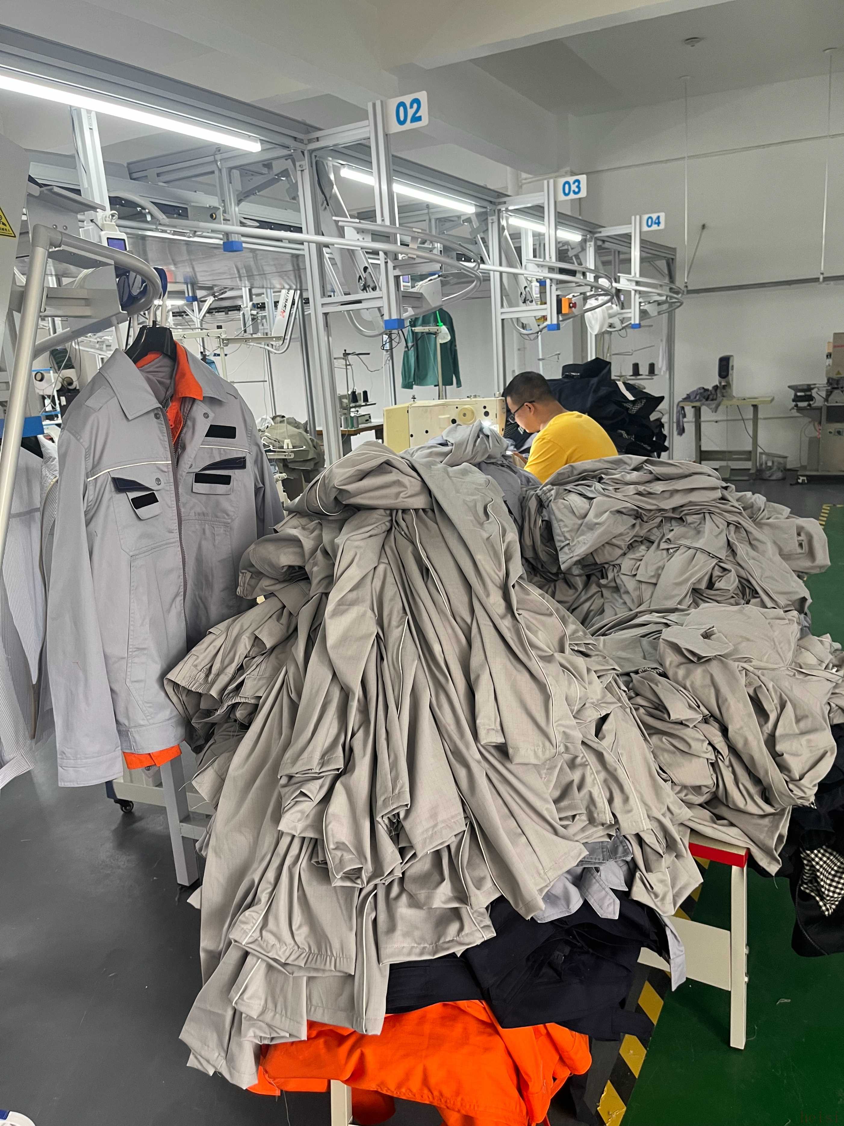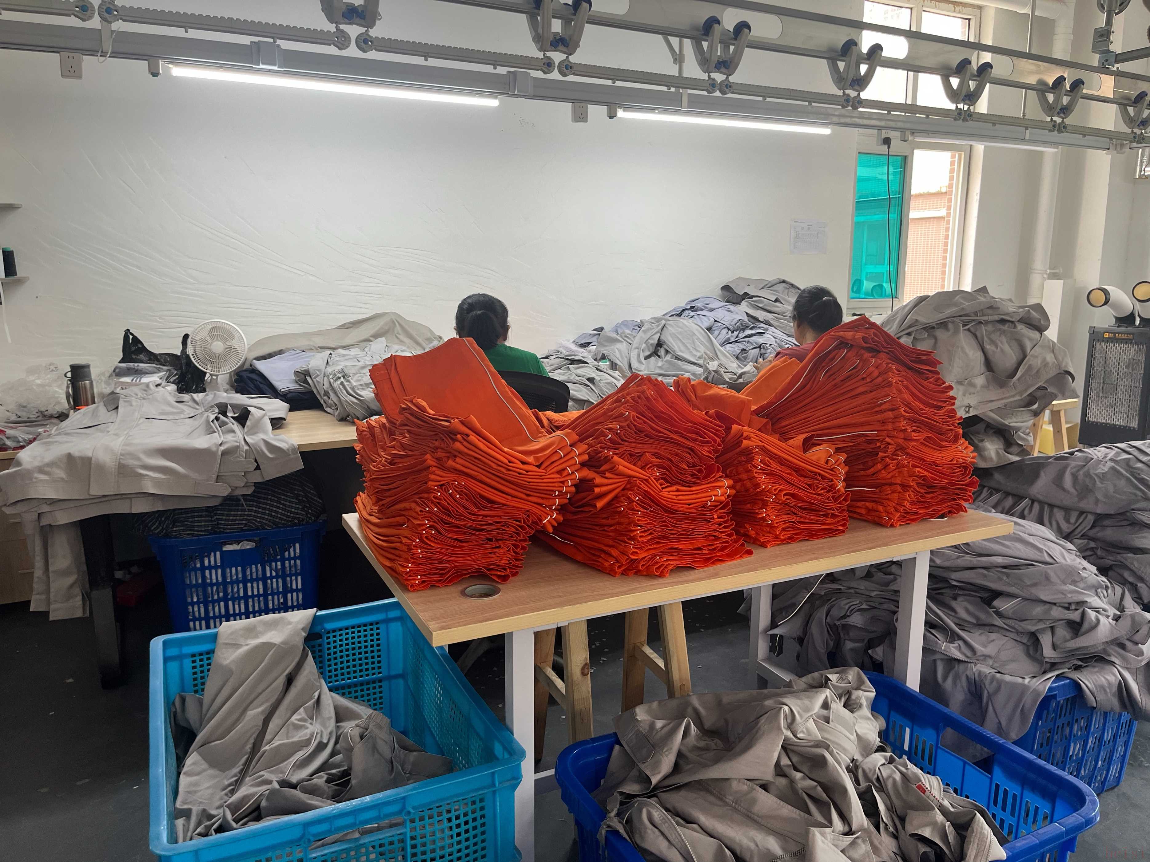 在智能化生產(chǎn)體系的加持下,哥登服飾重構(gòu)了工裝生產(chǎn)的全流程:自動排版系統(tǒng)精準(zhǔn)尋優(yōu),讓排料效率提升 40%,面料利用率大幅提高;智能裁床集成雙激光裁剪頭、分色識別、自動噴碼等功能,實現(xiàn)多號型同步精準(zhǔn)切割,在提速的同時確保每一件產(chǎn)品的尺寸誤差控制在毫米級;激光開袋機、全自動模板機協(xié)同作業(yè),讓縫線、開袋等工藝盡顯細(xì)膩;吊掛系統(tǒng)全程可視化管控,優(yōu)化物料流轉(zhuǎn)與人員調(diào)度,使縫制效率較傳統(tǒng)生產(chǎn)提升 1 倍。從面料處理到成衣成型,每一步都凝聚著 “科技賦能品質(zhì)” 的匠心。?