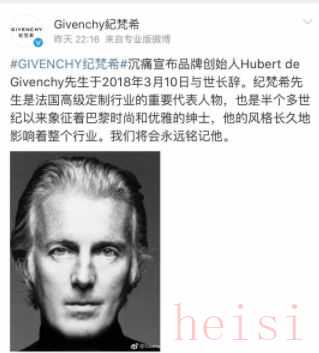 昨晚(3月12日),紀(jì)梵希品牌官方沉痛宣布,其創(chuàng)始人于貝爾·德·紀(jì)梵希(Hubert de Givenchy)與世長辭,享年91歲?!凹o(jì)梵希先生是法國高級定制行業(yè)的重要代表人物,也是半個多世紀(jì)以來象征著巴黎時尚和優(yōu)雅的紳士。他的風(fēng)格長久地影響著整個行業(yè),我們將永遠(yuǎn)銘記他?!?/p>