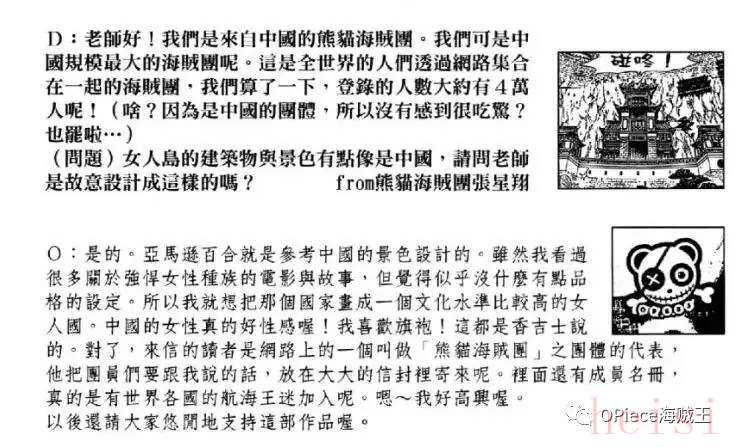 第三位:55卷里熊貓海賊團(tuán)的SBS,問題也是關(guān)于漫畫中的中國元素