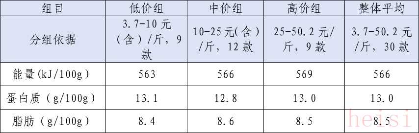 在本次試驗(yàn)中,30款雞蛋的能量平均值為566kJ/100g、蛋白質(zhì)平均值為13.0g/100g、脂肪平均值為8.5g/100g。