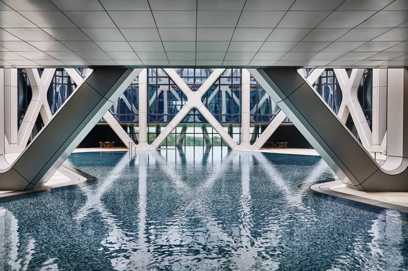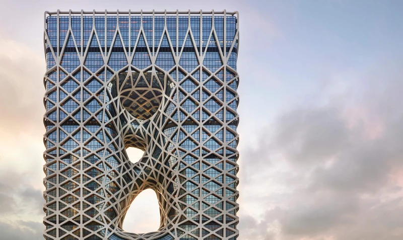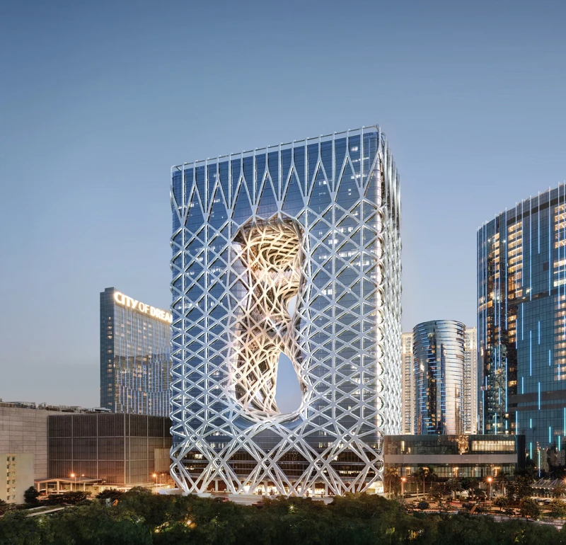 源自希臘夢神之名的,以玉件雕飾作為設計靈感,突破多項建筑技術于2018年落成,成為全球首座自由形態(tài)外骨骼結(jié)構(gòu)的摩天大樓。意思是,它的內(nèi)部不會出現(xiàn)我們習慣看見支撐建筑的單一柱體。兩座塔樓組成中空的景觀,在距離地面 130 公尺處橫覆著一座天際泳池。整座建筑共使用 28,000 噸結(jié)構(gòu)鋼,并以 50,000 平方公尺的網(wǎng)狀流線外骨骼鋁製覆面所環(huán)繞。