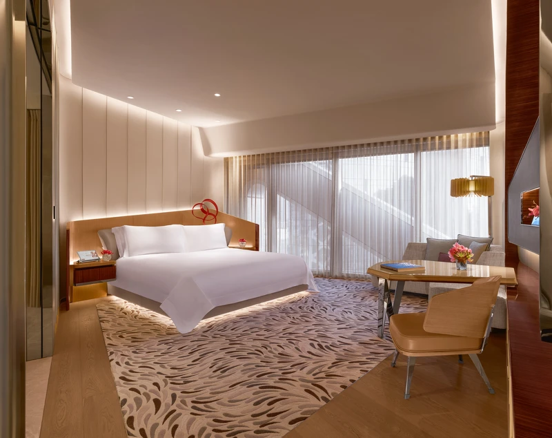 Morpheus 摩珀斯酒店的房間由 Peter Remedios 擔綱室內(nèi)設計。共有約 770 間客房、套房及別墅,包括 9 間僅限邀請入住的(3 間泳池別墅、6 間複式別墅)。