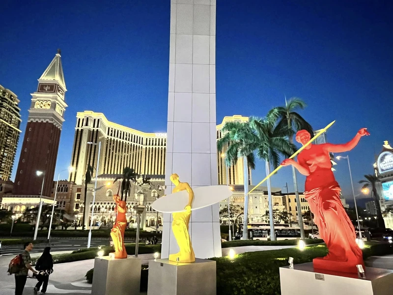 而環(huán)狀結(jié)構(gòu)的新濠天地,在摩珀斯酒店、頤居酒店、迎尚酒店以及澳門君悅酒店公共空間,展示多件藝術收藏品,包括村上隆等名家之作,如同流動的美術館,可以自由尋寶,或參照藝術地圖按圖索驥。