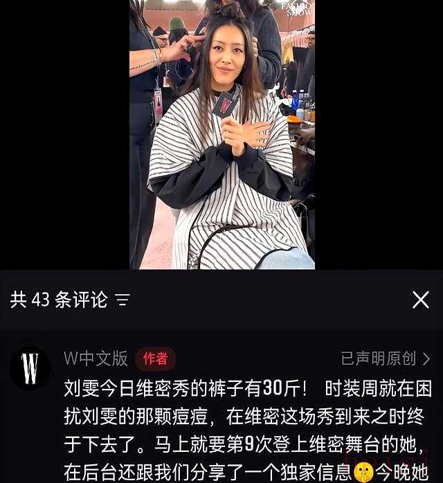 "總結(jié)來說,這段話是在評(píng)論維密大秀期間:" 劉雯的服裝非常出色、引人注目。 雎曉雯