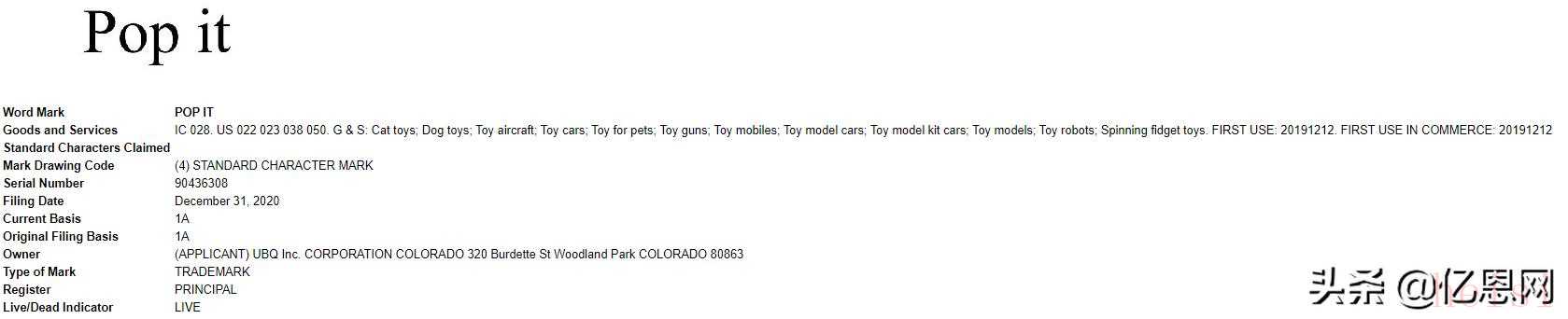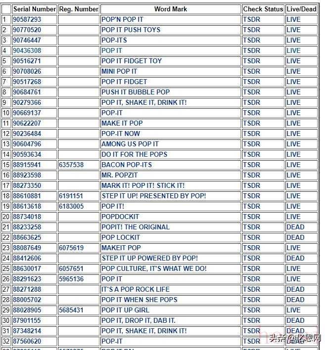 除此之外,小編通過美國商標專利局USPTO查詢發(fā)現(xiàn),pop it的周邊商標都是存活狀態(tài),因此賣家想對他進行改寫,如pop-it、pop it now,pop its等都有侵權風險。