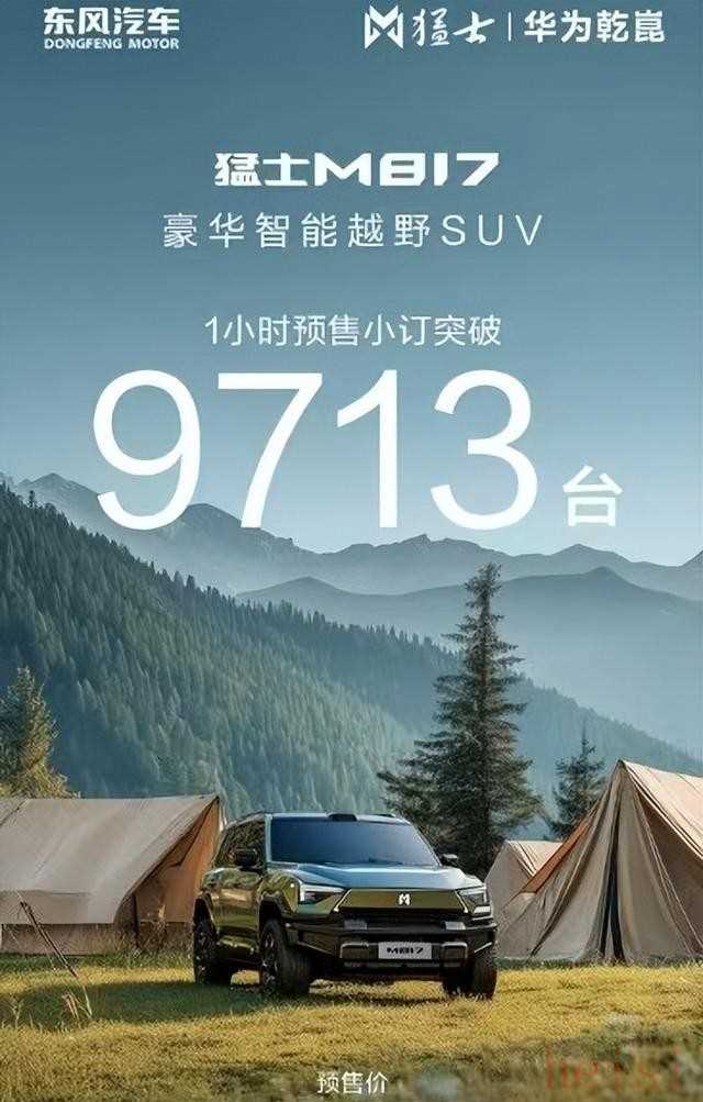 市場的反應(yīng)已經(jīng)給出了初步的答案。猛士M817上市后,預(yù)售1小時的訂單就超過了9700臺。8月份,它成了30萬元以上硬派越野車市場的銷量第一名。
