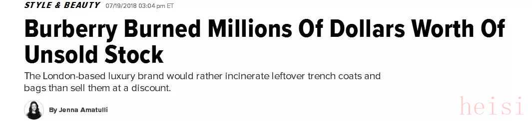 《赫芬頓郵報》對此直接諷刺道:“這家總部位于倫敦的奢侈品牌寧愿將剩下的風衣和手袋燒成灰,也不愿打折出售。