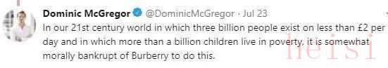 在我們21世紀的世界中,有30億人口每天以不到2英鎊收入生活,其中超過10億兒童生活在貧困之中,Burberry實際上在道德上已經(jīng)破產(chǎn)了。
